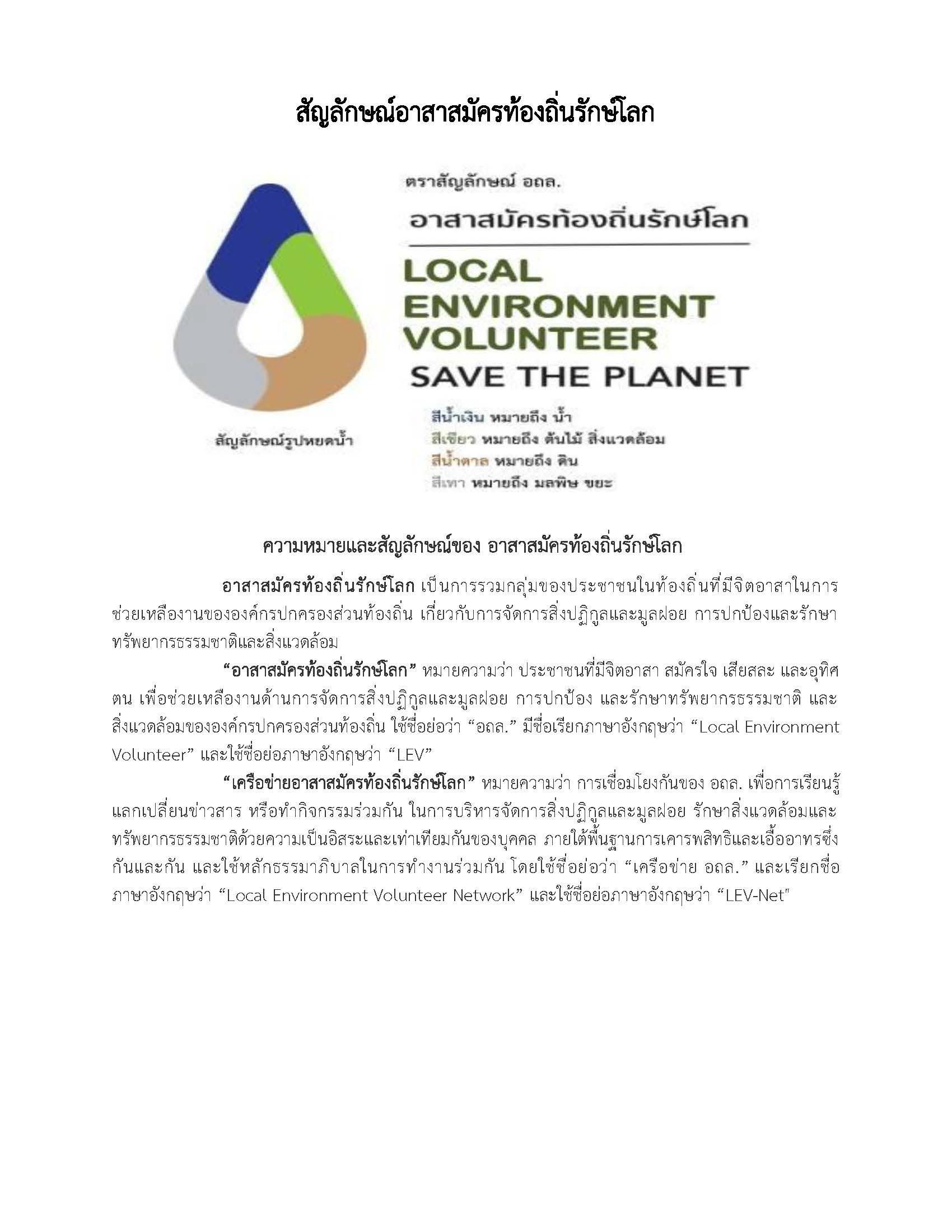 สัญญลักษณ์อาสาสมัครท้องถิ่นรักษ์โลก